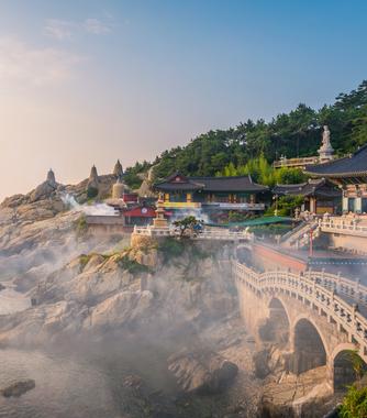 La presencia de hermosos templos como Haedong Yonggungsa, Seokbulsa y Beomeosa pueblan la ciudad. Suelen ubicarse en la cima de las colinas, por lo que además de serenidad ofrecen espectaculares vistas que dejan una profunda huella en el alma.
