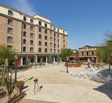 PortAventura Hotel Gold River - Entradas Al Parque Temático Se encuentra En la zona de Salou de Tarragona, España. Es un hotel de cuatro estrellas conectado a un parque acuático y centro de convenciones y está a pocos minutos de PortAventura World, Ferrari Land y Llevant Beach. Los visitantes pueden llegar al Lumine Mediterránea Beach Club & Golf y a la Fuente Iluminada en menos de una hora a pie. La estación de Salou Port Aventura está a media hora andando y el aeropuerto de Reus está a menos de diez minutos en coche.